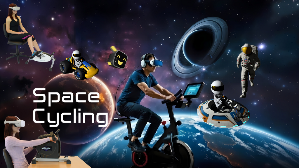 Explore or interact with mini games using your pedal motion and your Quest headset. Your controllers are not needed. It works with all forms of stationary bikes that have pedal arms. This includes a seatless exercise bike for arm or leg exercise. Just attach a Bluetooth cadence sensor to the pedal arm.